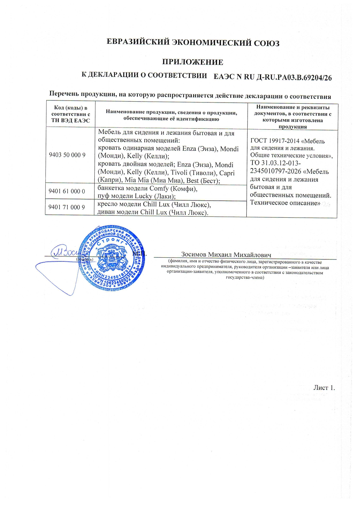 • Сборка кроватей и другой мебели осуществляется в момент доставки.